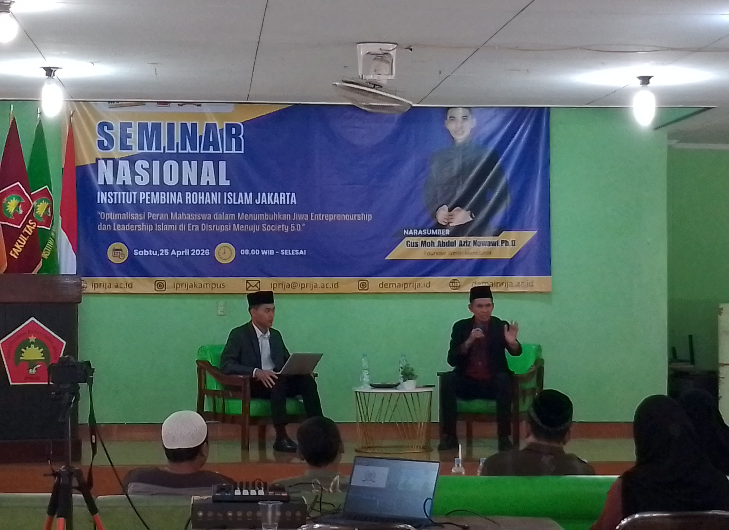- Jakarta,- Dewan Eksekutif Mahasiswa Institut Pembina Rohani Islam Jakarta IPRIJA sukses gelar seminar nasional bertajuk “Optimalisasi Peran Mahasiswa dalam Menumbuhkan Jiwa Entrepreneurship dan Leadership Islami di Era Disrupsi Menuju Society 5.0”. Acara diadakan di Aula Masjid Darul Ulum Institut Pembina Rohani Islam Jakarta, Sabtu 25/04/26.