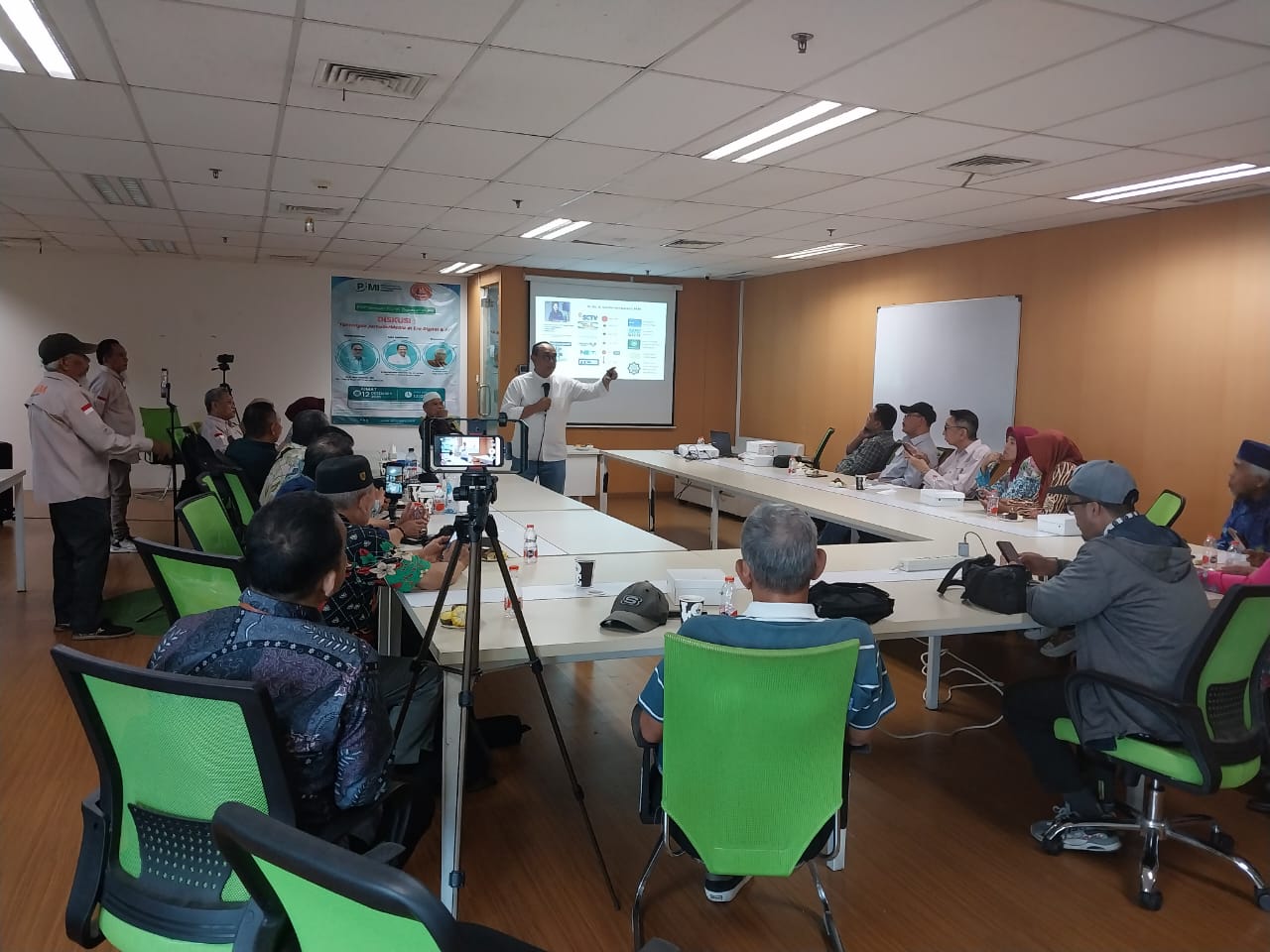 Diskusi dipandu oleh H. Ismail Lutan, Ketua Umum PJMI, yang memastikan dinamika forum berjalan interaktif.
