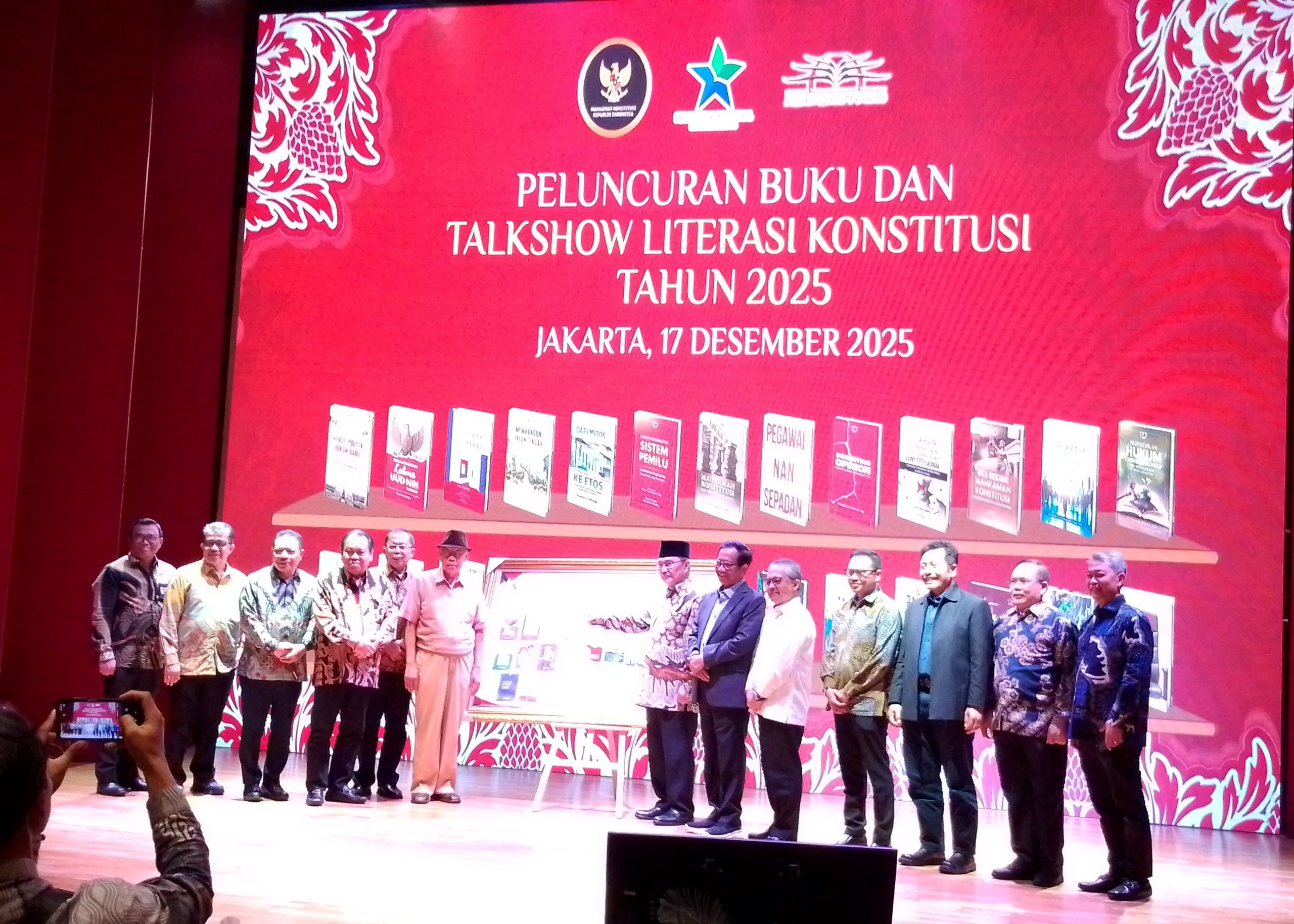 Jakarta – Mahkamah Konstitusi Republik Indonesia (MK RI) bersama Perpustakaan Nasional RI dan Penerbit RajaGrafindo Persada gelar Peluncuran Buku dan Talkshow Literasi Konstitusi Tahun 2025 . Acara berlangsung di Auditorium Lantai 2 Perpustakaan Nasional dan disiarkan secara daring lewat Zoom serta kanal YouTube MK RI dan Perpustakaan Nasional. Selasa, 17/12/25.