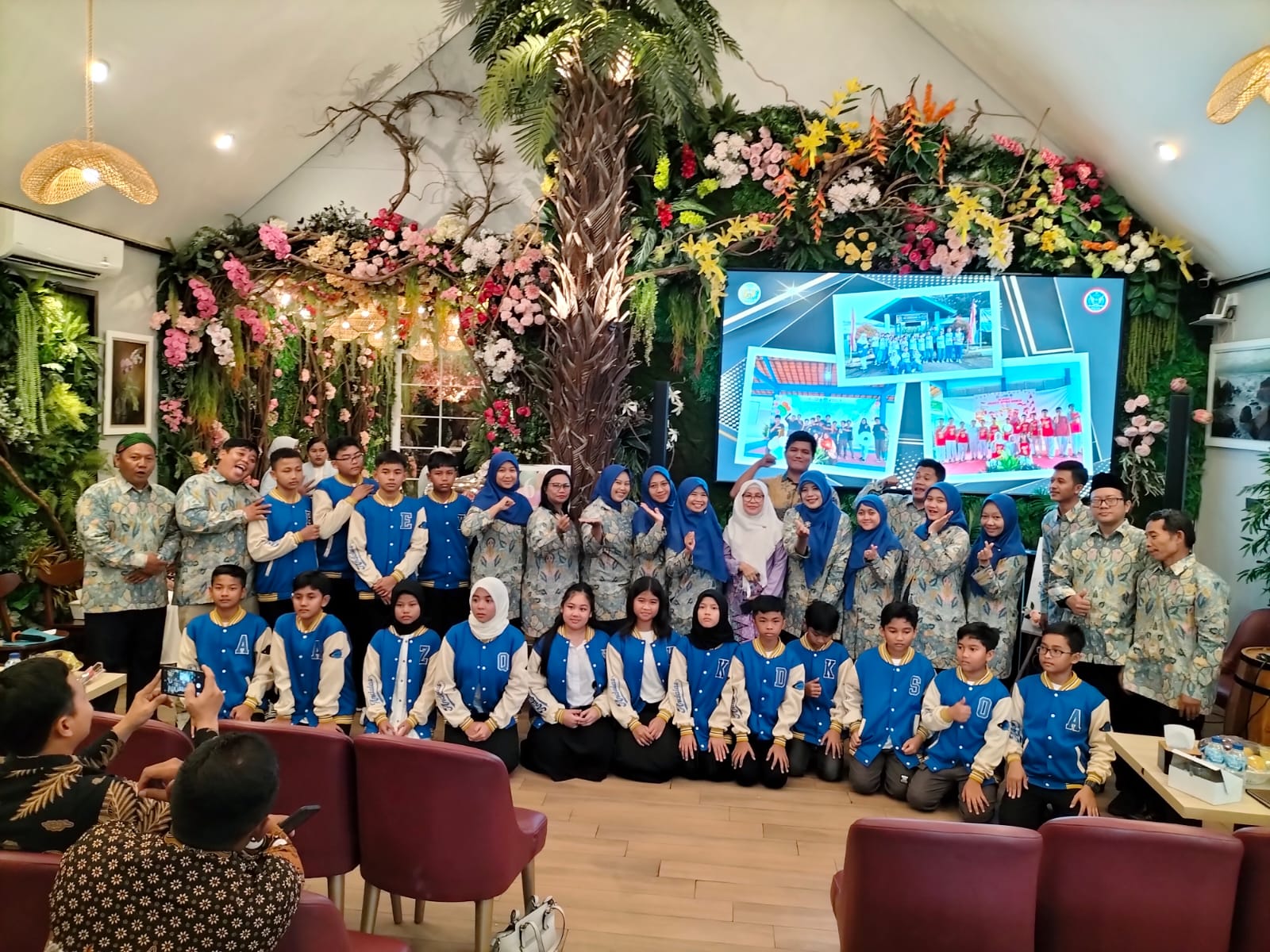 Para siswa antusias menyambut acara perpisahan sekolah pelepasan siswa siswi .